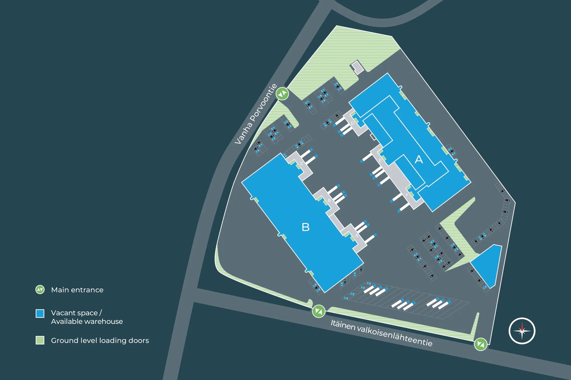 Situated within the Vantaa Akseli logistics hub, the property enjoys a prime location halfway between Helsinki Airport (13 km) and Vuosaari Harbour (13 km), and just 2 km from the intersections of Ring Road III and the Lahti motorway (E75). This site offers excellent connections to all parts of Finland.