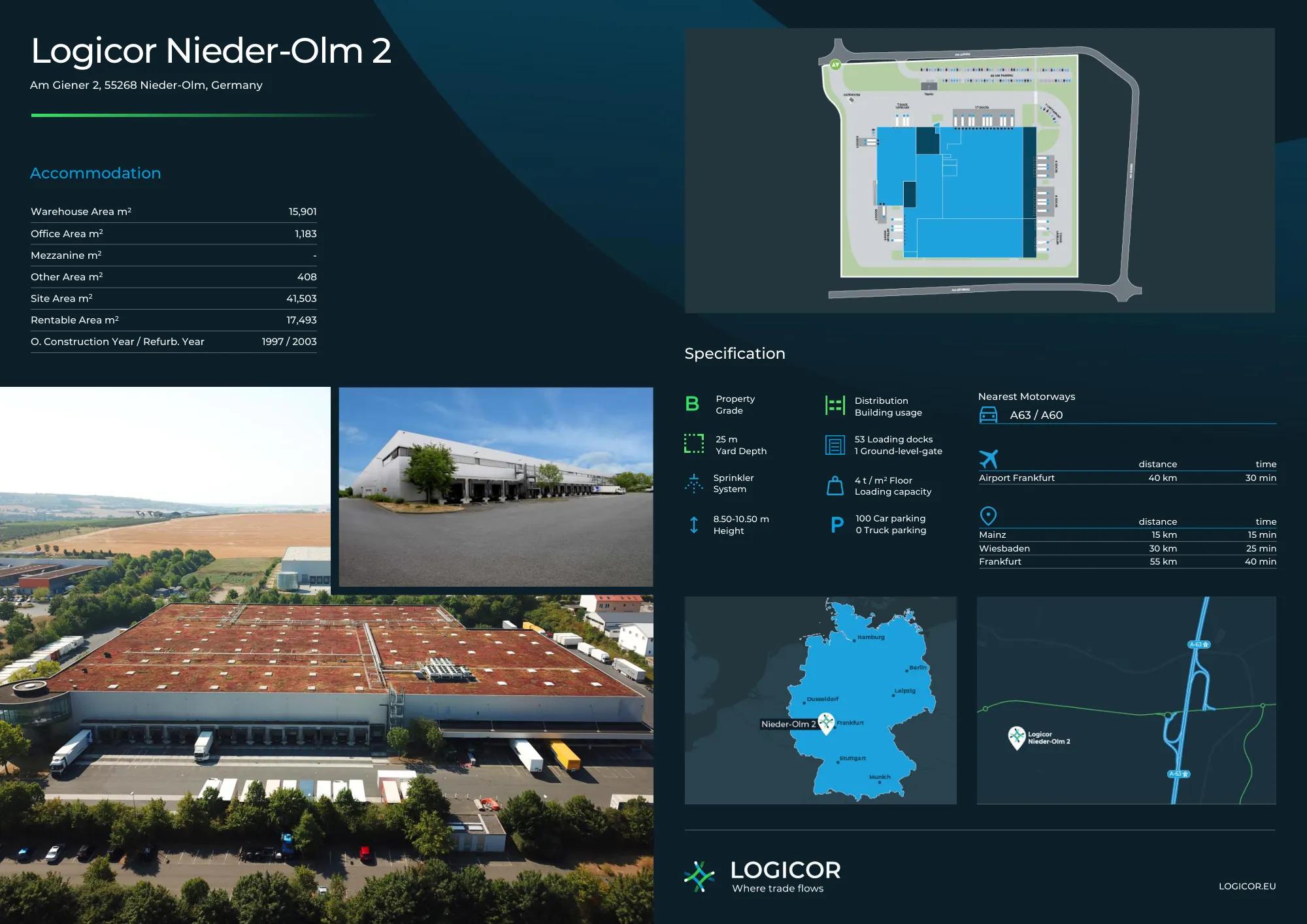 Warehouse: 15901.00 sqm | Warehouse: 171159.00 sqf | Office: 1183.00 sqm | Office: 12737.00 sqf | Total space: 17493.00 sqm Total space: 188291.00 sqf