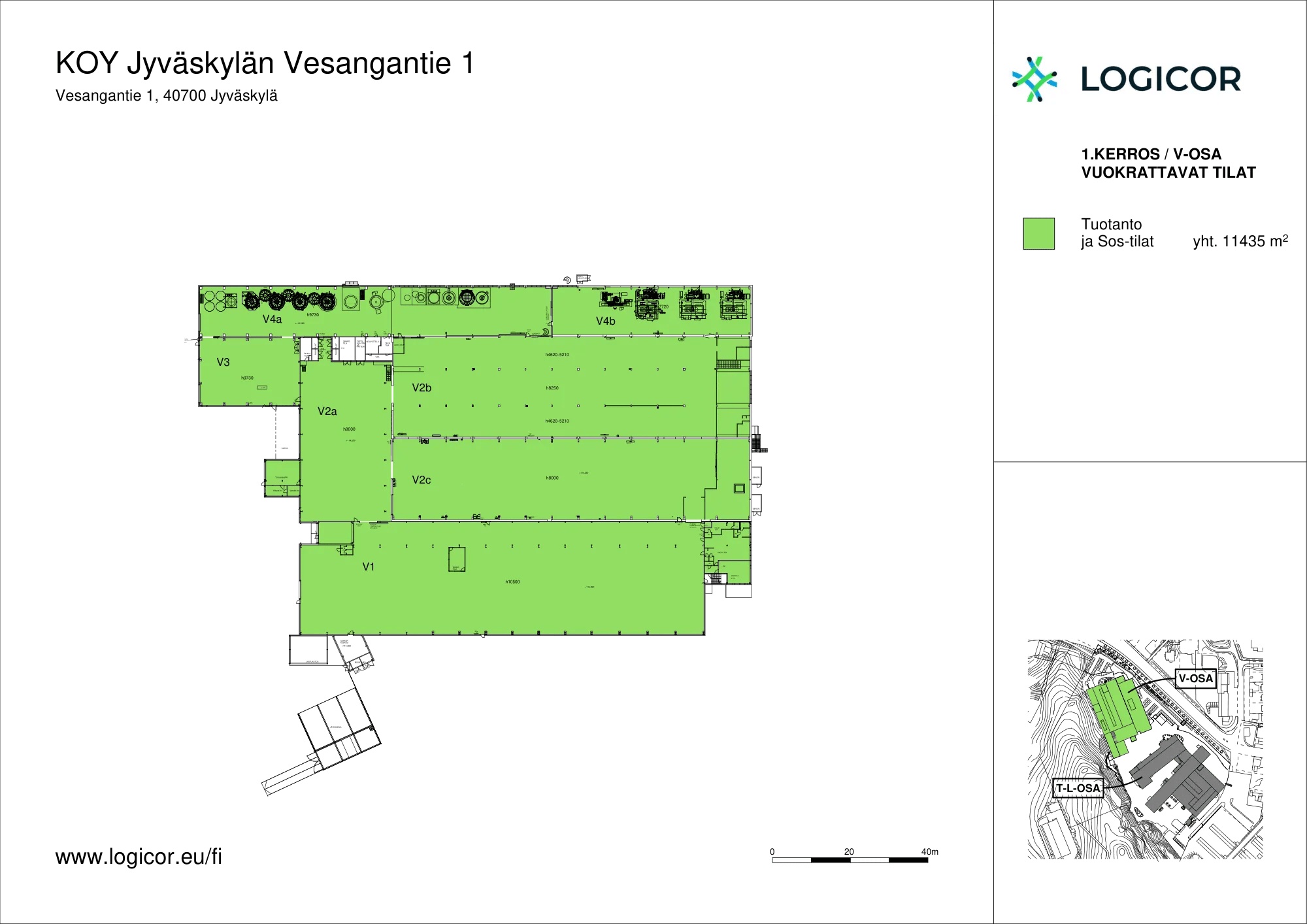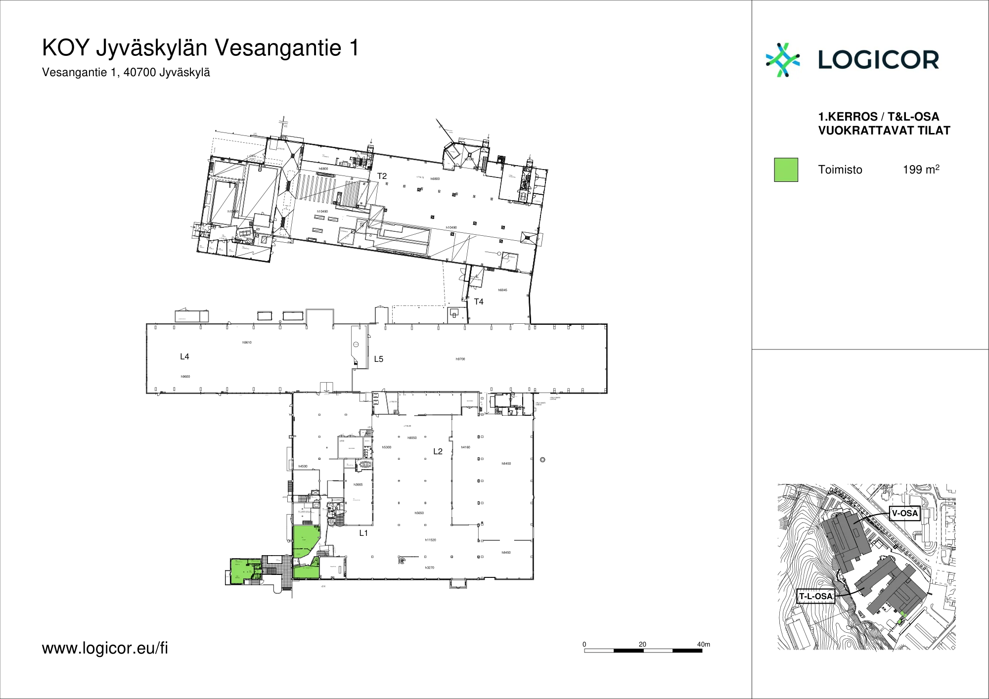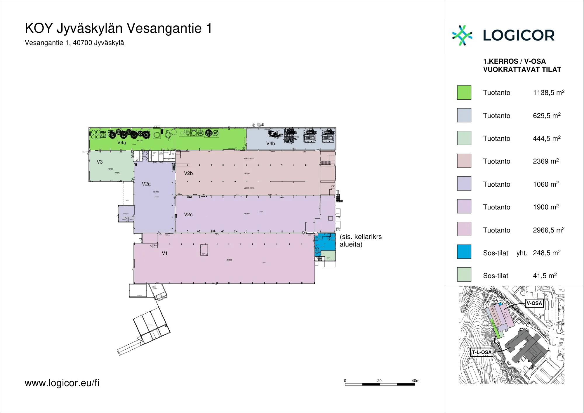 Vesangantie 1 is well located just a couple of kilometers from Jyväskylä city centre, in the Rautpohja district, next to the Hippos sports park and ice hockey arena. Several bus lines run nearby. The site offers quick access to the national road 9 (E63) toward Tampere and Kuopio, as well as the national road 4 (E75) toward Helsinki and Oulu.