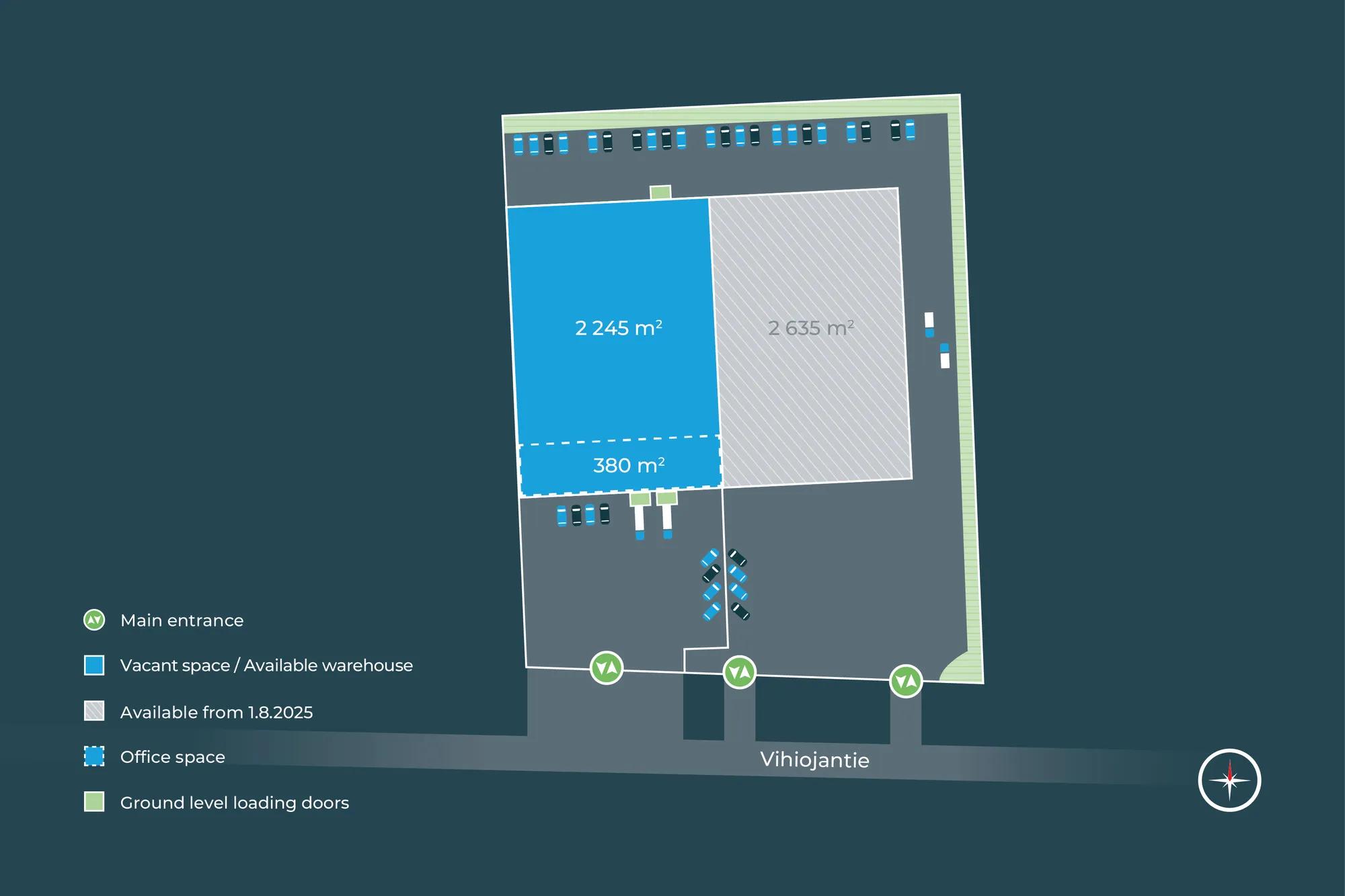 Well-located industrial property offering 10-meter-high warehouse space just 3 km from the centre of Tampere.