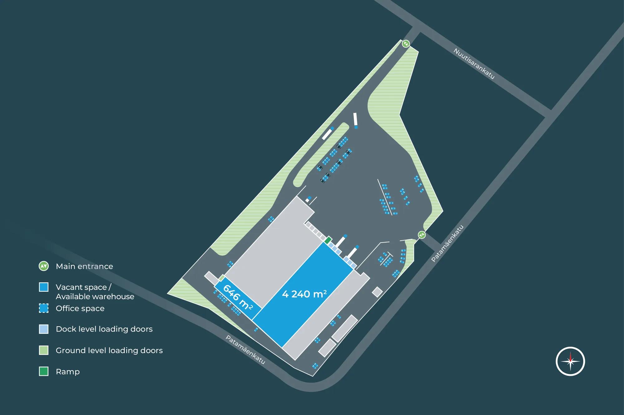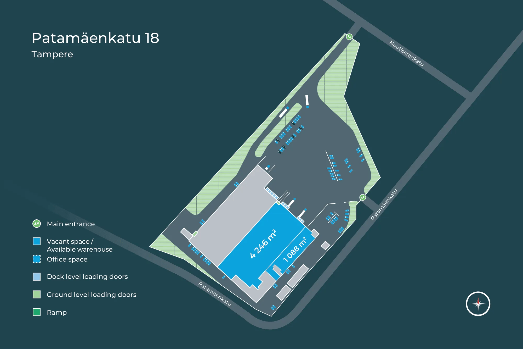 Well-located warehouse property in Tampere Sarankulma logistics area with excellent transport connections.