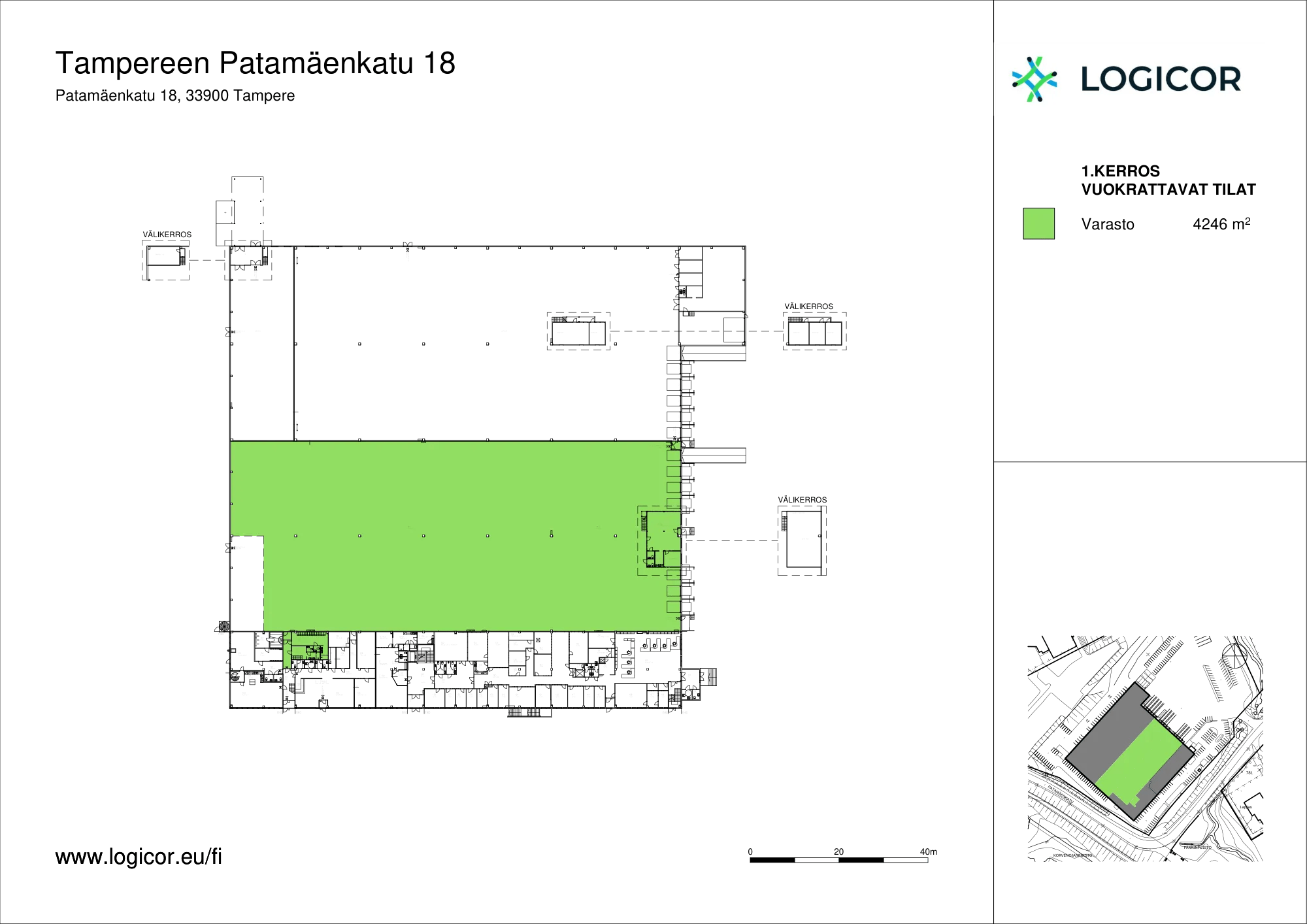 Situated in the Sarankulma logistics hub, the property offers quick access to both motorway 3 (E12) toward Helsinki and Vaasa, and motorway 9 (E63) toward Turku and Jyväskylä, ensuring fluent connections across Finland. Tampere railway station is only 6 km away. The area is well served by public transport. All the services of Tampere are within a short drive.