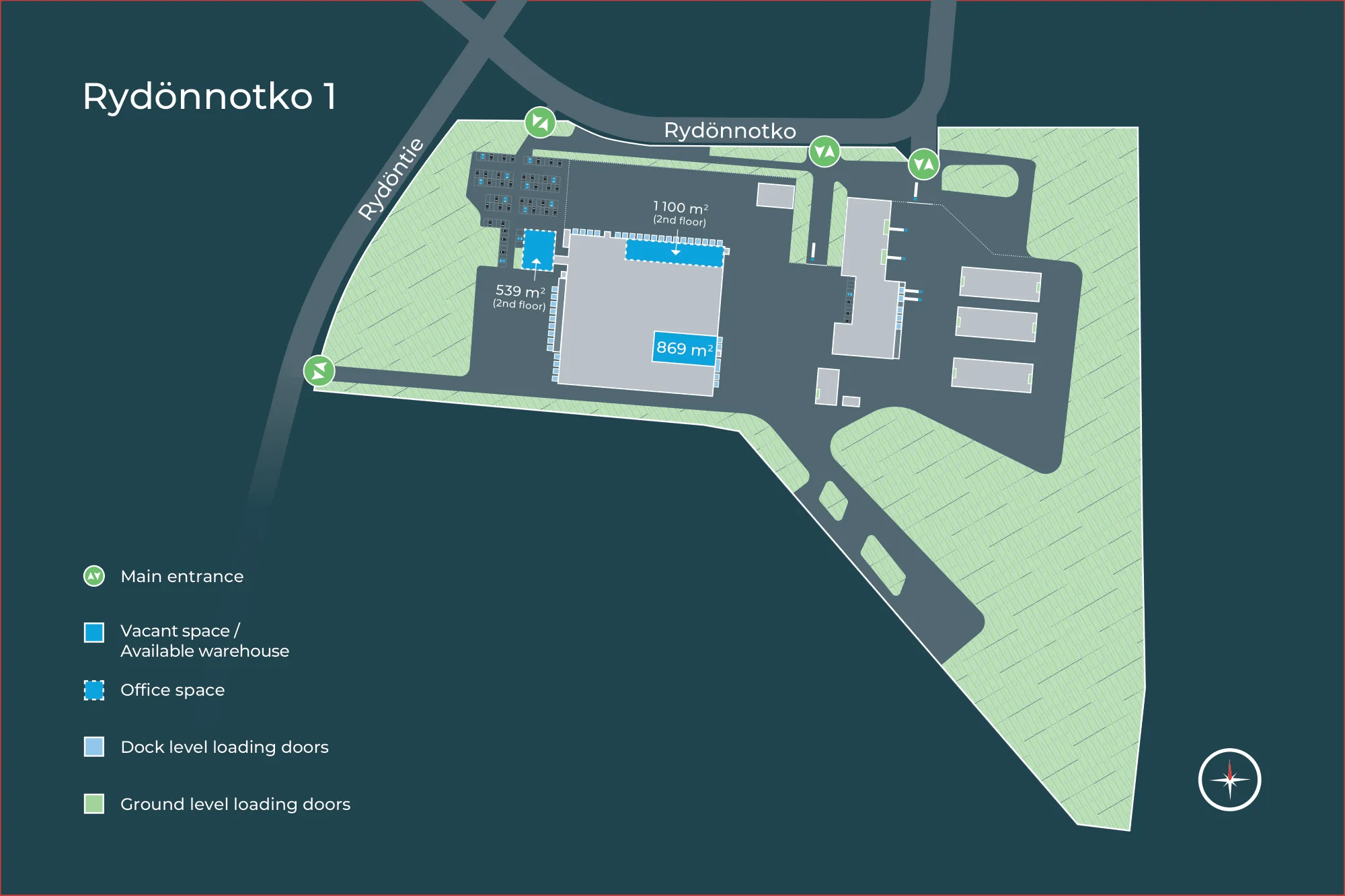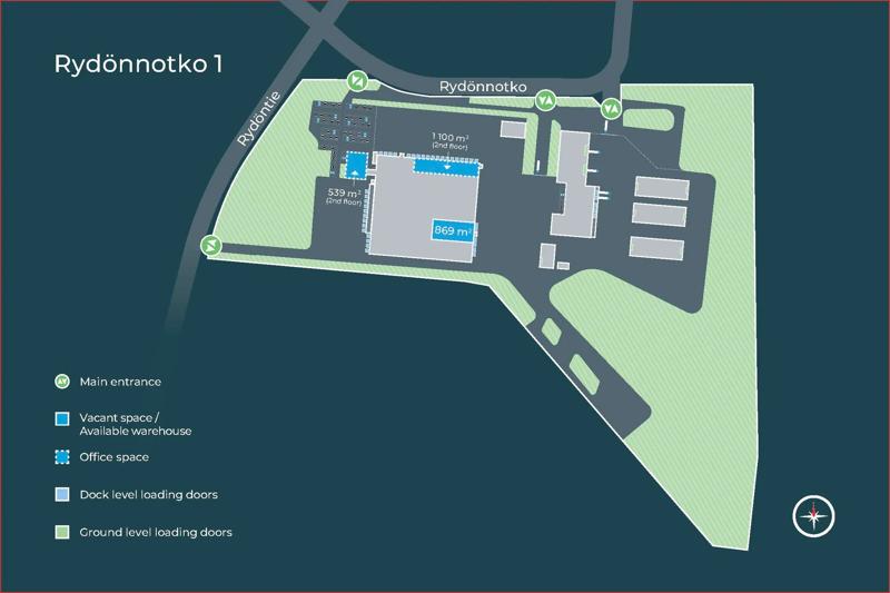 The property is well-located in the Urusvuori industrial area of Turku, with quick access to the Turku–Helsinki motorway (E18) and to the Turku–Tampere motorway (E63) as well as to the West coast (E8).