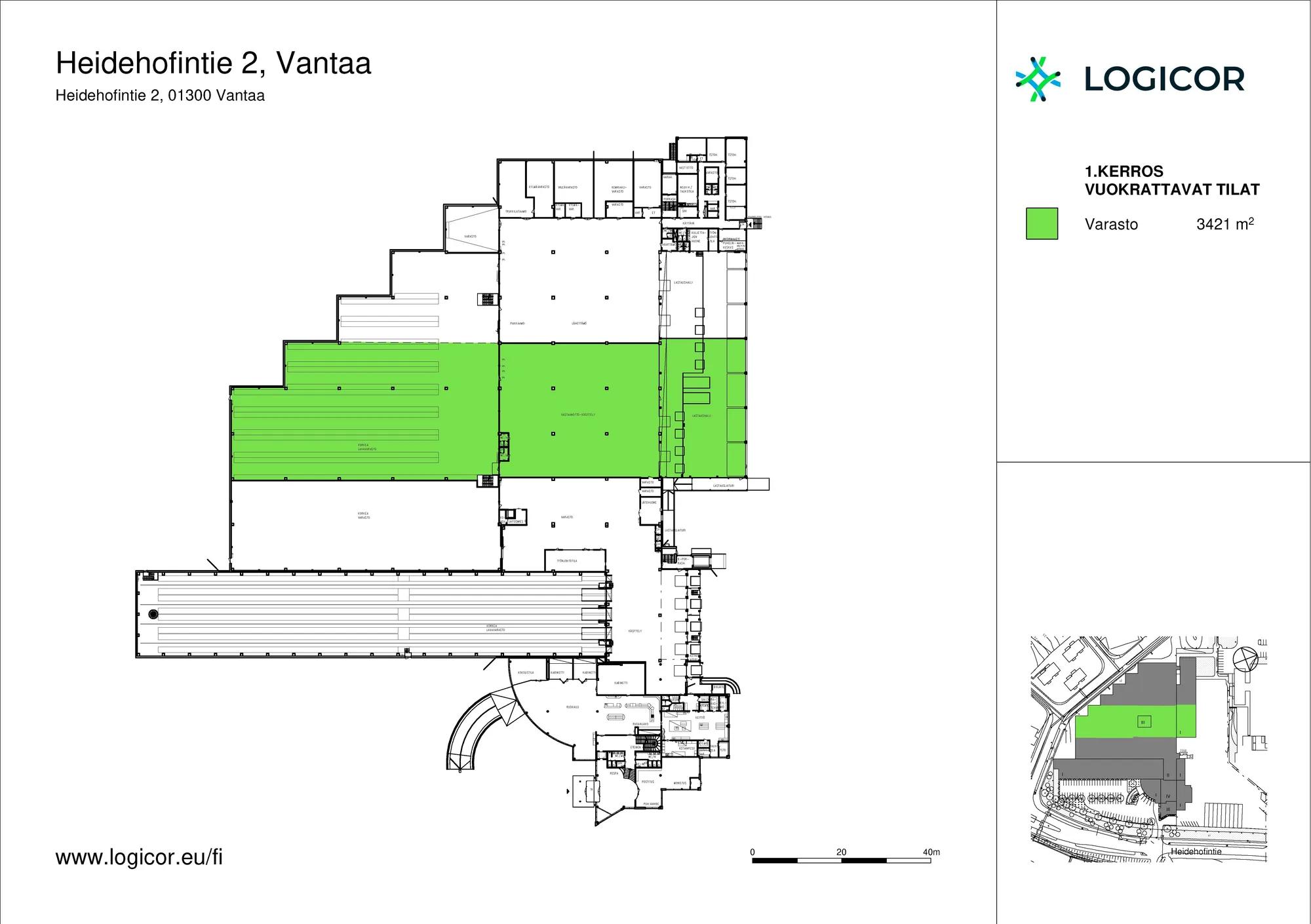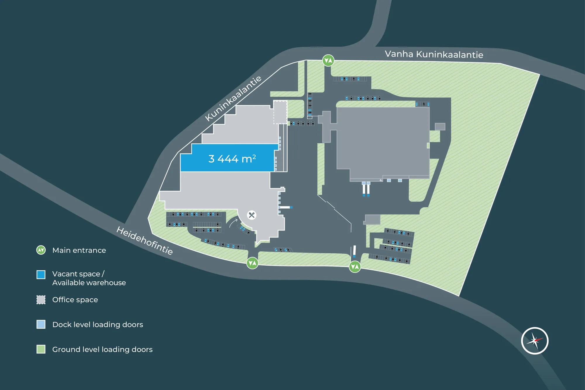 The property is located in the immediate vicinity of Ring Road III and the Ring Rail Line. Connections are excellent to Helsinki Airport (8 km) and the Vuosaari Harbour (11 km). Tikkurila railway station is just 1.4 km away, with good bus connections via Kuninkaalantie, making the property easily accessible.