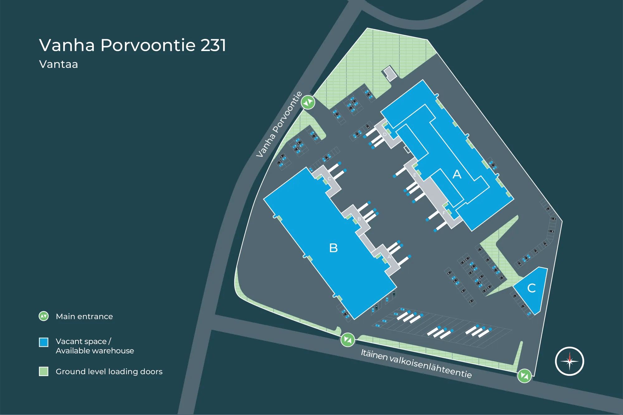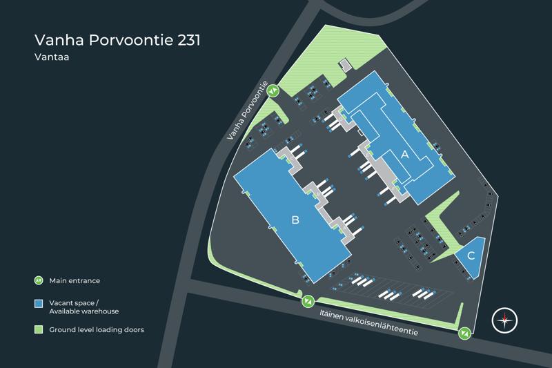 Situated within the Vantaa Akseli logistics hub, the property enjoys a prime location halfway between Helsinki Airport (13 km) and Vuosaari Harbour (13 km), and just 2 km from the intersections of Ring Road III and the Lahti motorway (E75). This site offers excellent connections to all parts of Finland.