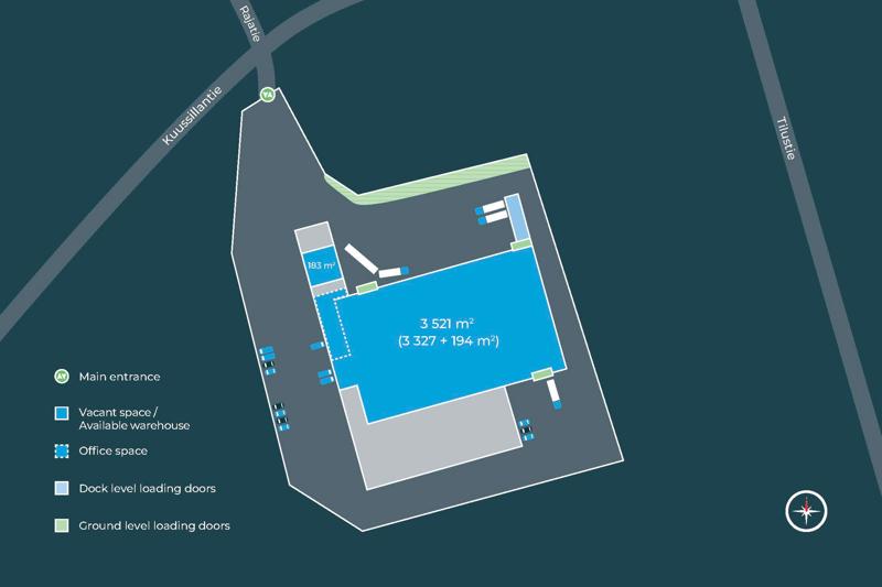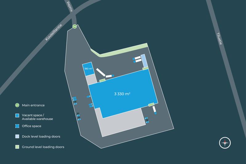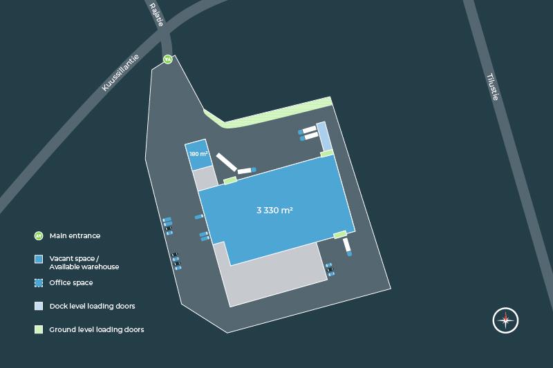 The warehouse property is located in Vantaa in a prime logistical hub between the Helsinki airport and Vuosaari harbour, offering easy access to the E75 (Highway 4) and all over Finland. The property was built 1999 and consist of two four storey industrial / warehouse units with office space totalling approx 36 000 sqm. Maximum clear hight is 6 m, loading doors 24 with access to 5 000 kg freight lifts.
