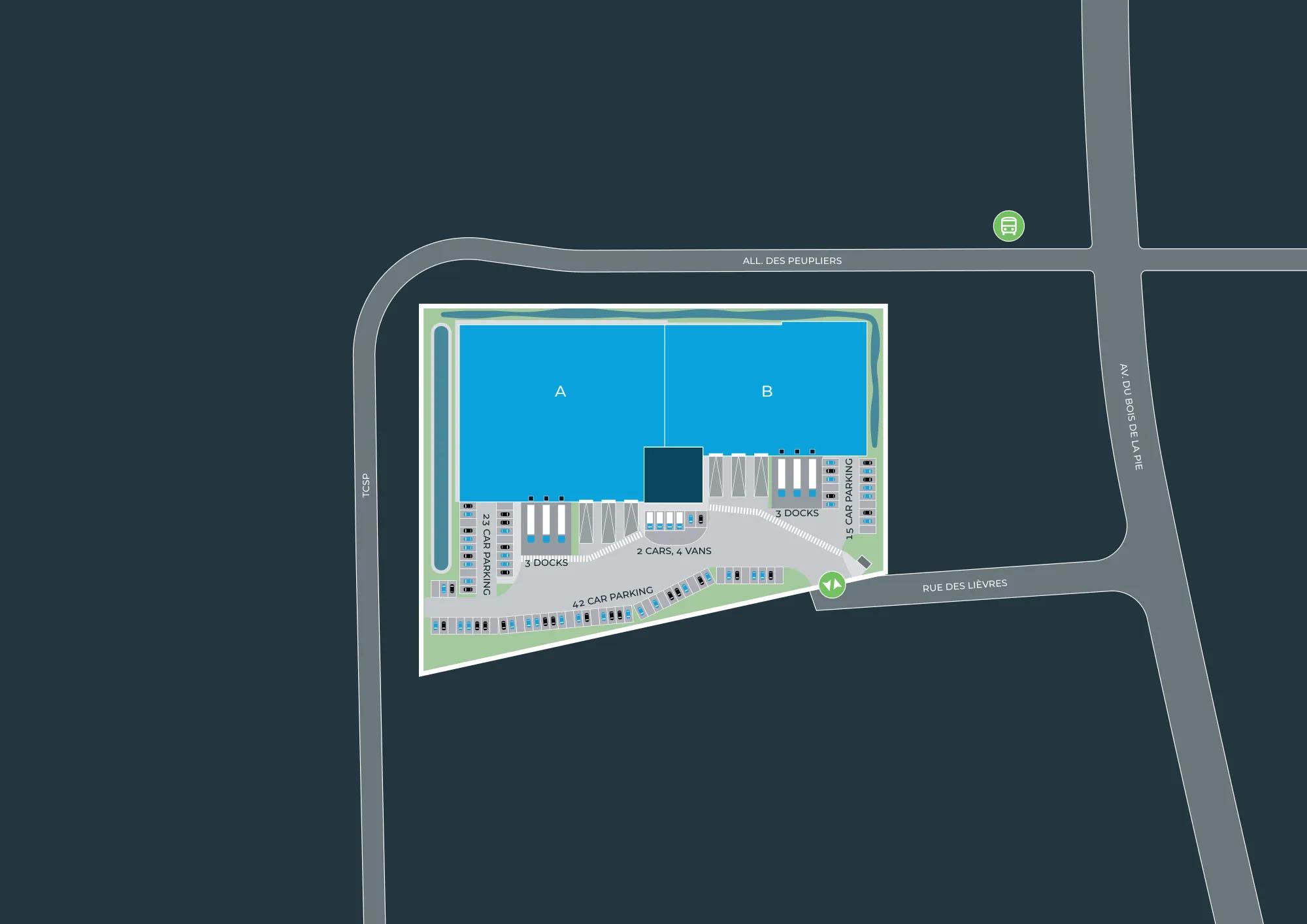 Ideally located just 16 km from Paris, Paris Nord 2 enjoys exceptional accessibility thanks to a comprehensive nearby public transport network. With its 300 hectares of developed land, this business park is the leading private business park in Europe, home to 550 companies, 22,000 employees, and comprising 266 buildings. Paris Nord 2 also stands out for its 70 hectares of landscaped green spaces, providing an inspiring and pleasant working environment designed to enhance employee well-being and productivity. This new, modern warehouse will be designed to meet the needs of professionals. Flexible in layout, it can be divided into two separate units, offering a tailored solution for two tenants.