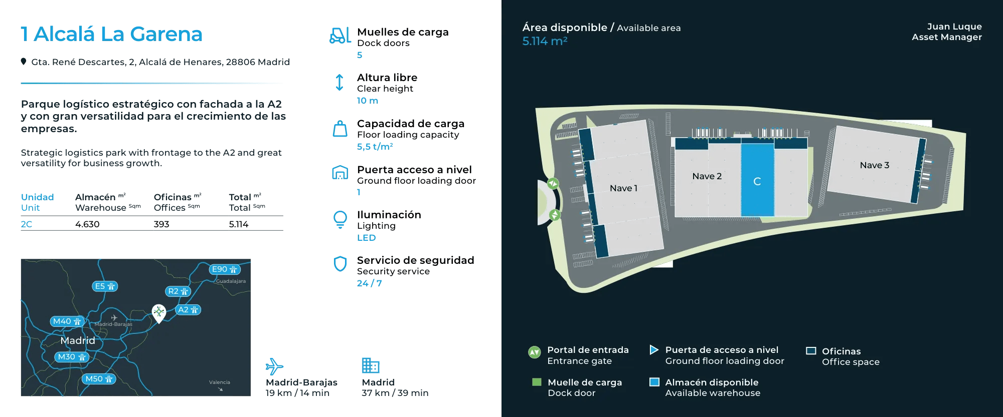 • Unit C: Availailable now:  5,114 sqm. Please see brochure for offices, ramps, docks breakdown.