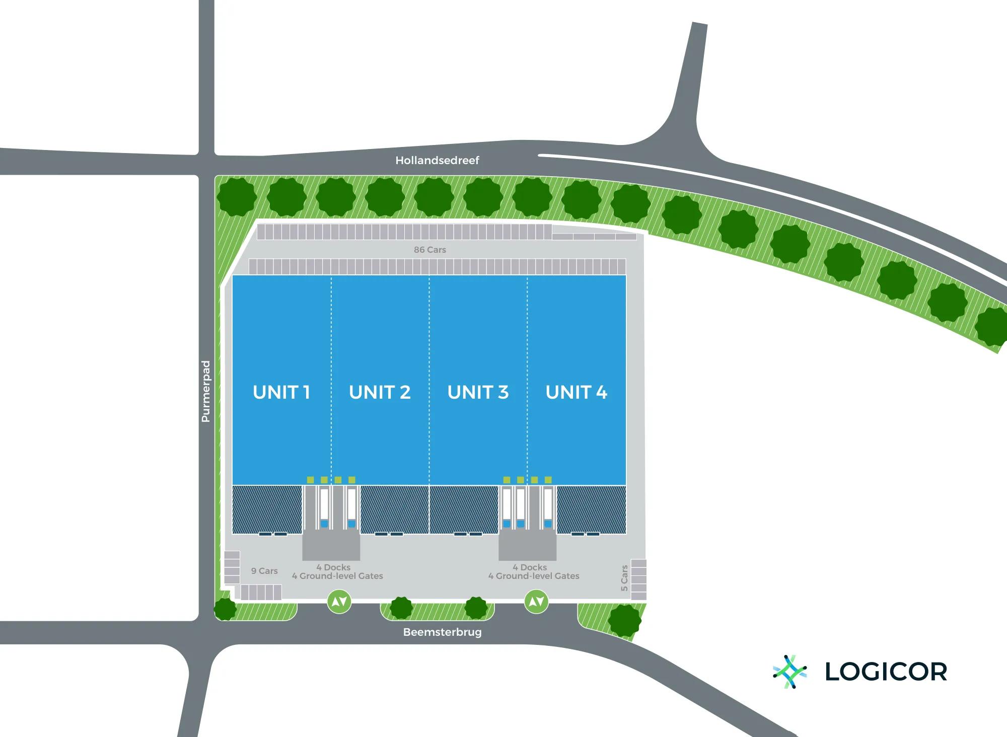 Almere is strategically located in the fast-growing Randstad area and has circa 220,000 inhabitants, and approximately 90,000 households. In the heart of urbanized Netherlands, this property is ideally suited for lastmile distribution. Furthermore, nearby highways connect to multiple urbanized cities and municipalities. The new built property is comprised of almost 11,200 sqm of high-quality office and warehouse space. Also, it complies to the latest technological and sustainability standards receiving an BREEAM ‘Very Good’ and will therefore be low cost to operate for last mile logistics. With four connectable units, each of circa 2,200 sqm of warehousing space and circa 300 sqm office space, the property is highly flexible. The site provides sufficient space for parking (& charging electric) vehicles.