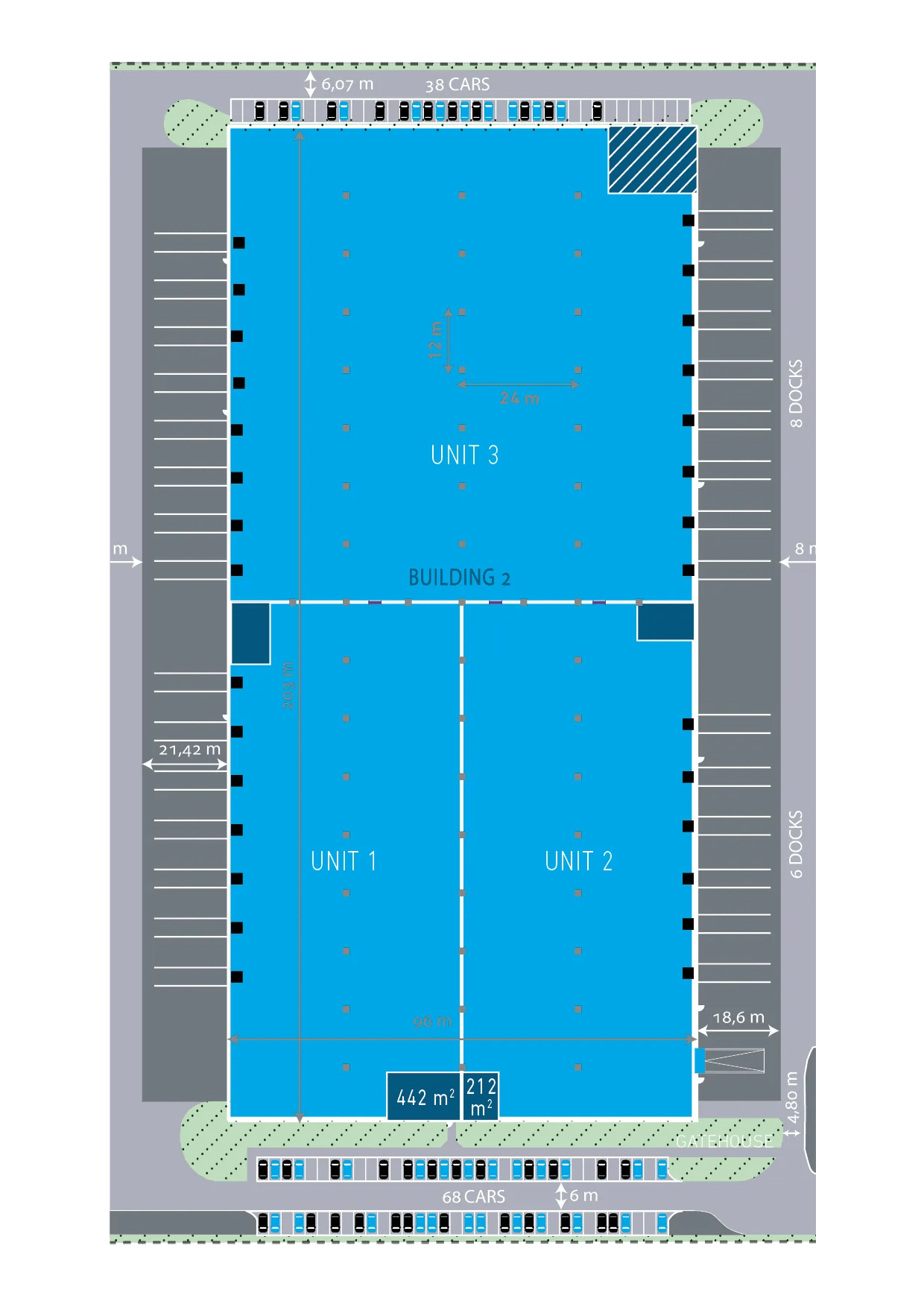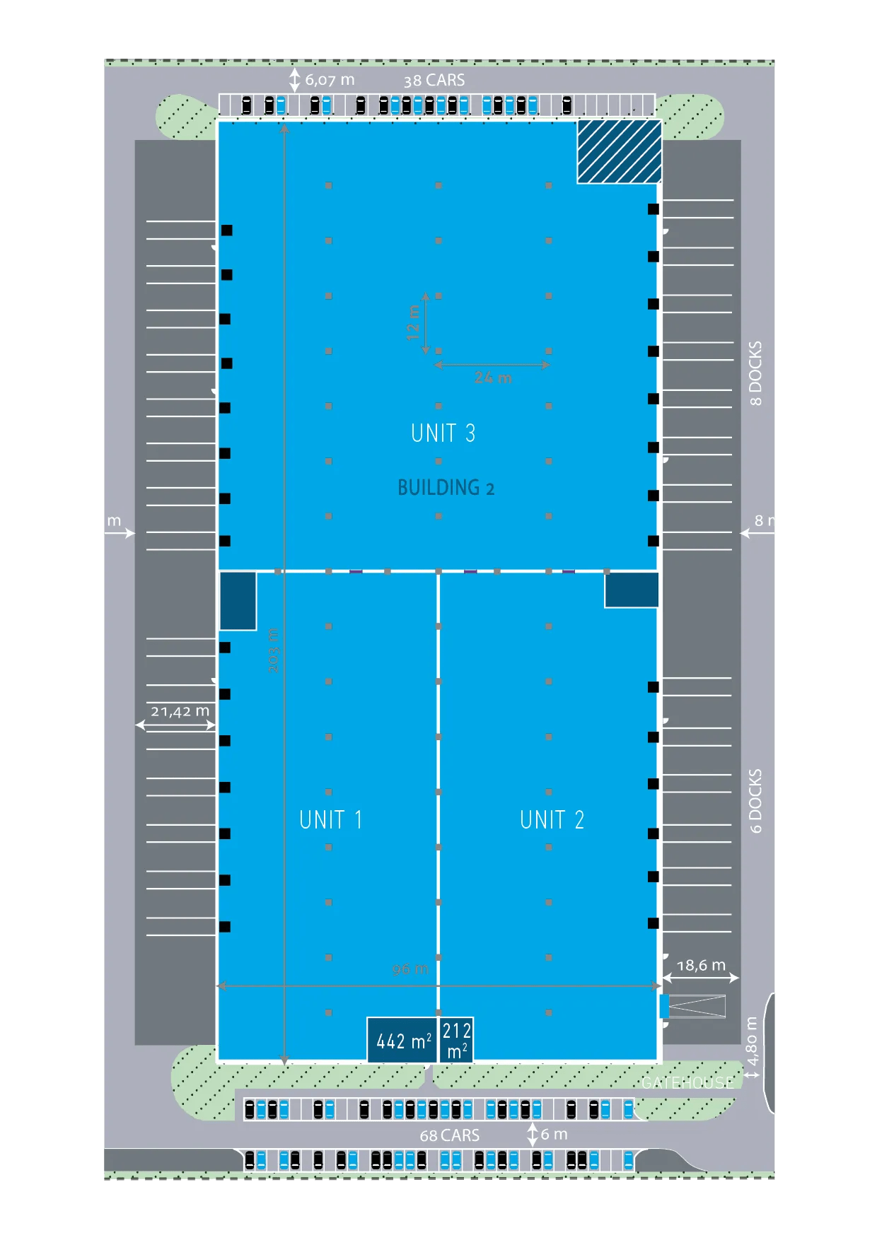 Warehouse: 19300.00 sqm | Warehouse: 207743.56 sqf | Office: 654.00 sqm | Office: 7039.60 sqf | Total space: 19954.00 sqm Total space: 214783.16 sqf