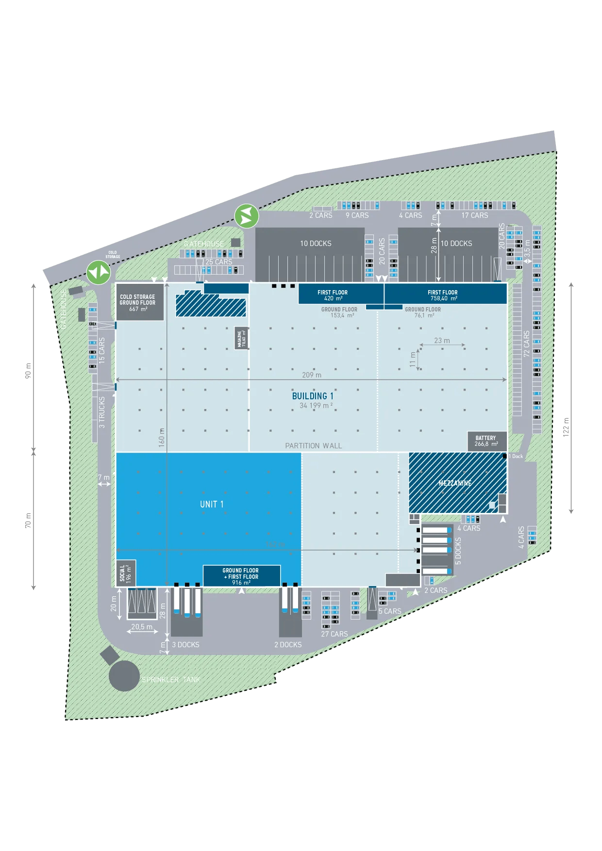 Warehouse: 6565.00 sqm | Warehouse: 70665.10 sqf | Office: 916.00 sqm | Office: 9859.74 sqf | Total space: 7481.00 sqm Total space: 80524.84 sqf