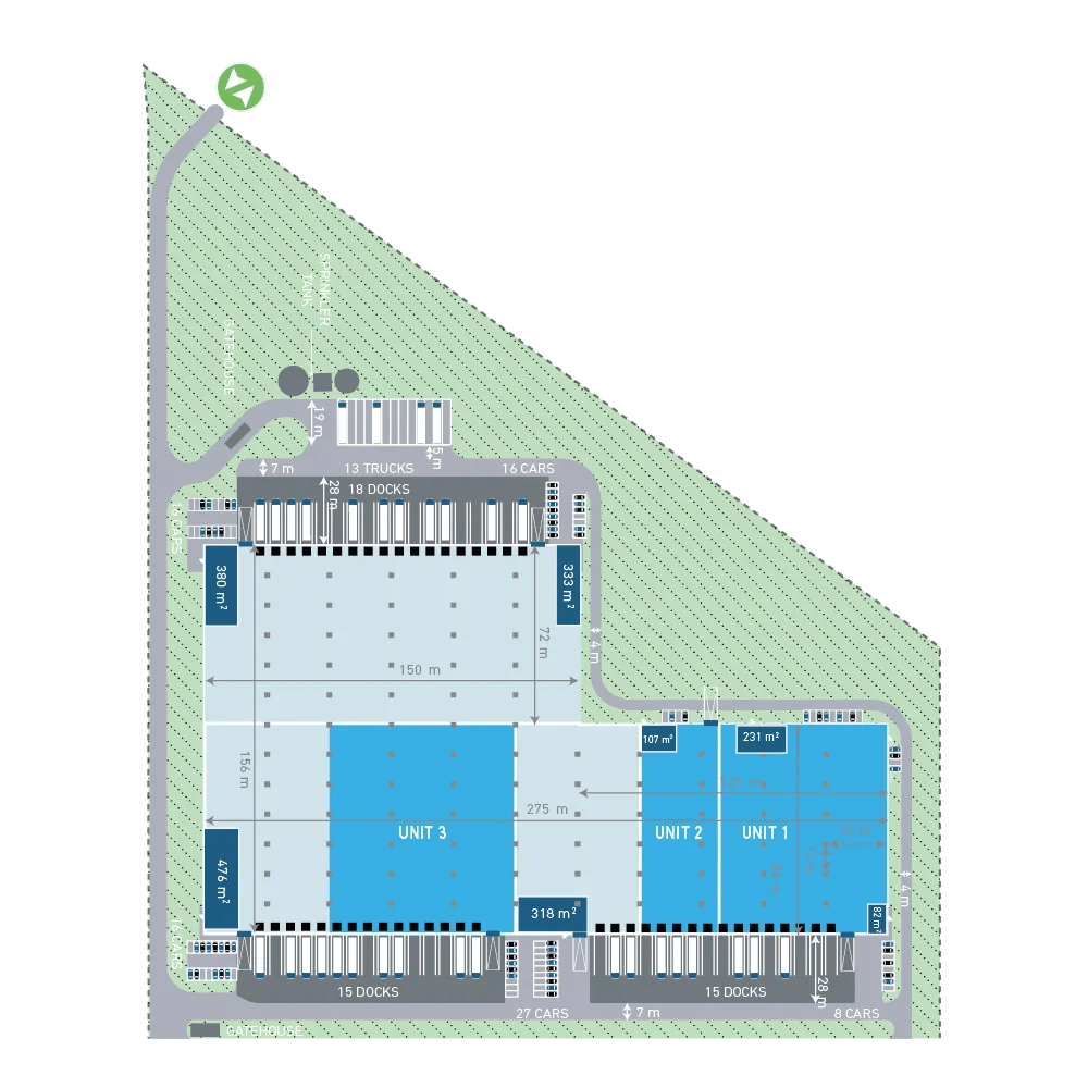 Logicor Stryków is located in central Poland, just 5 km from the intersection of the A1 and A2 motorways. The Park is located on route 71, right next to the “Stryków” junction which links the A2 motorway with national road 14. The distance from the Park to the centre of Łódz is 15 km which provides easy access to a skilled workforce.